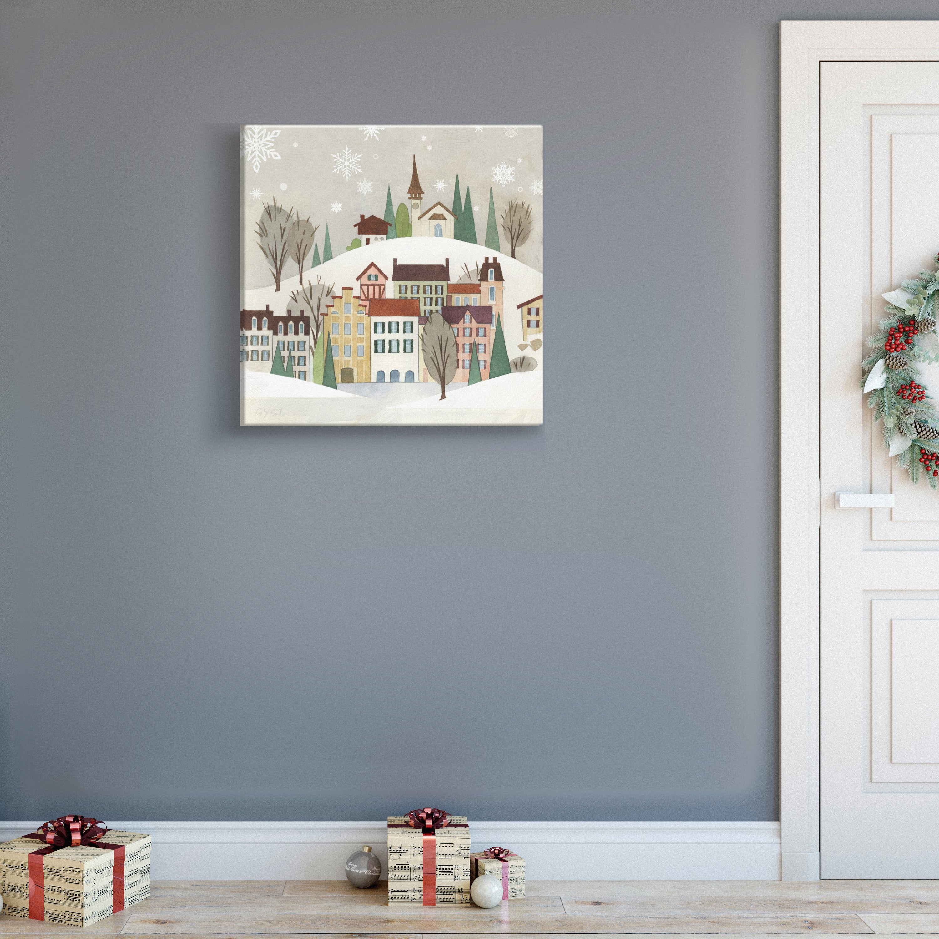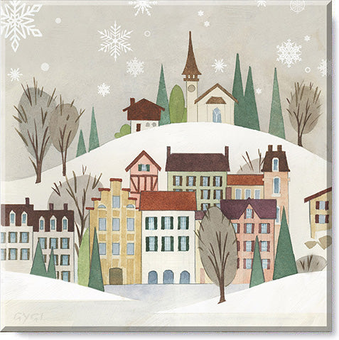 Retro Christmas Village Canvas Wall Art