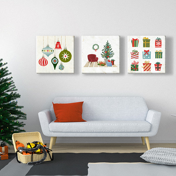 Retro Christmas Ornaments Canvas Wall Art